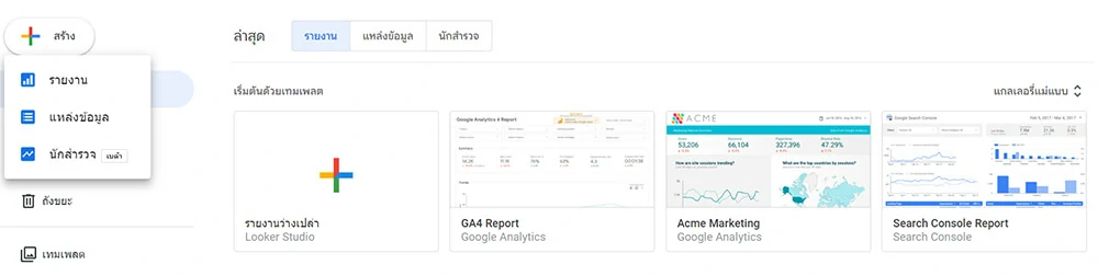 Data Studio มีเทมเพลตให้เลือกใช้มากมาย ผู้ใช้สามารถเลือกเทมเพลตที่ตรงกับความต้องการและปรับแต่งเพิ่มเติมเองได้